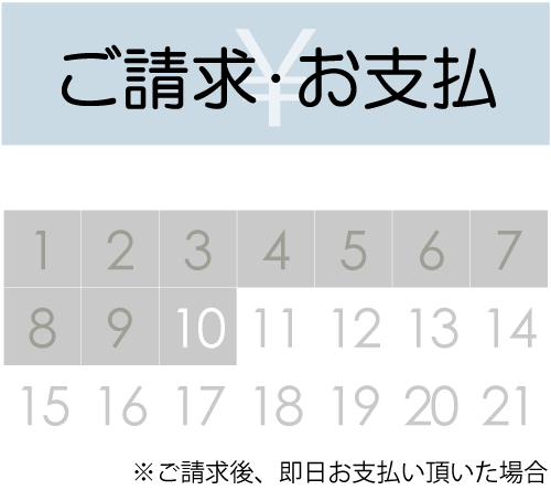 決定稿が完成し、内容のご承諾頂いた後、請求書を提出させて頂きます。 請求書記載の口座に額面代金をお振り込みください。 |